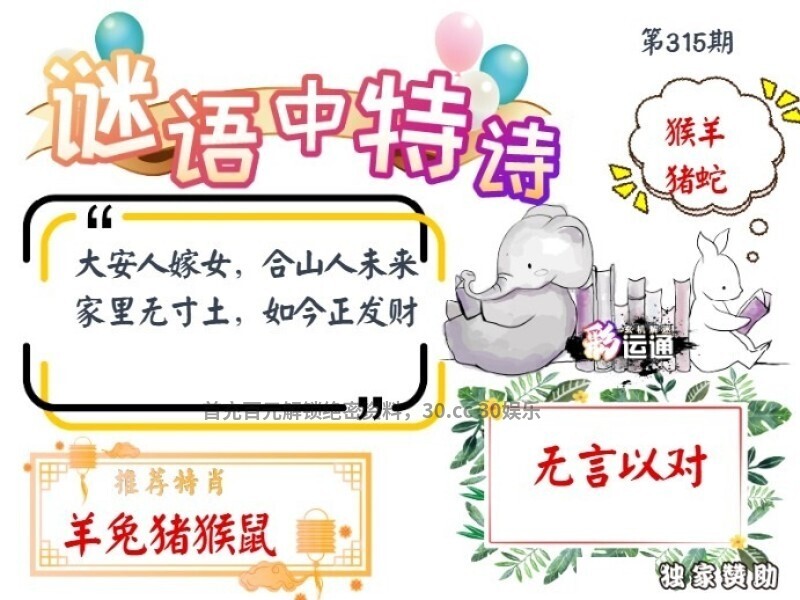 | 315期平特一尾❤【333尾】❤开:猪43准 |
